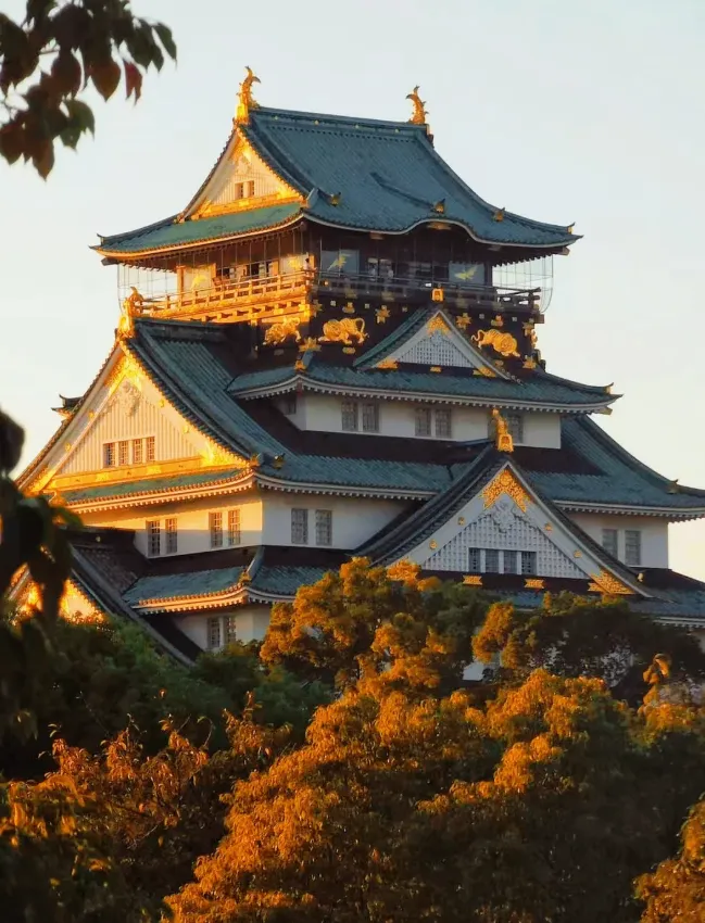 大阪城公园以丰臣秀吉的“黄金天守阁”为核心,是日本最具象征性的历史地标之一。每到深秋,约3000棵枫树与银杏将古城染成绚丽的红黄色调,护城河的倒影与石垣相映,宛如一幅浮世绘。