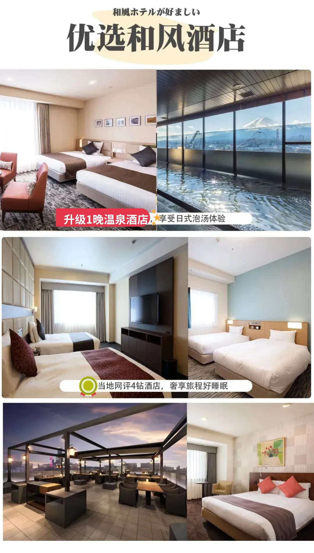 【用餐】酒店含早,6早餐,6正餐,餐标1000日元,不吃不退。【日本饮食与国内饮食习惯不同,以清淡生冷为主,请您做好心理准备。】