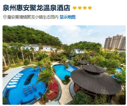 用餐:早餐:自助早;中餐:海鲜餐;晚餐:崇武风味餐 //住:聚龙温泉酒店