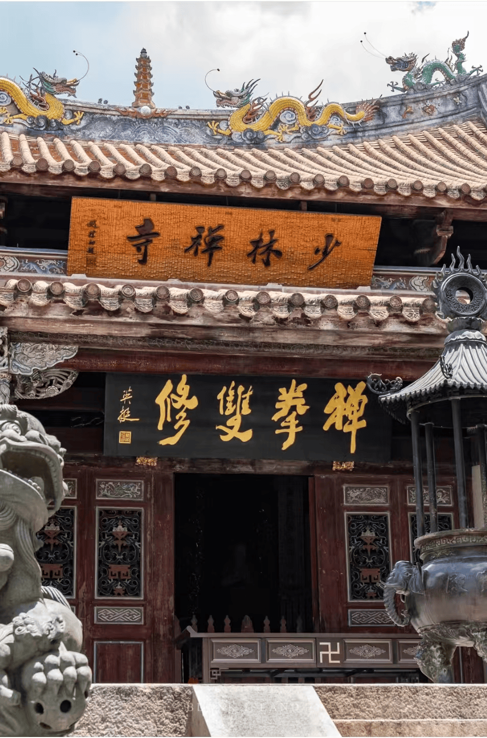 始建于唐朝,兴盛于两宋,至今已有上千年历史,经历几度兴废,史迹犹存。有牌坊、正山门、大雄宝殿、方丈楼、观音阁、藏经阁、五观堂等仿古建筑。金庸曾到此题词“少林武功,源远流长,传来南方,光大发扬”十六个字。