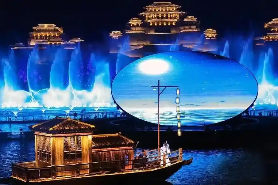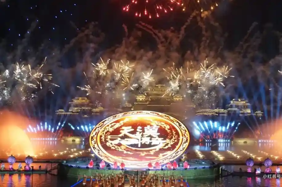 当夜幕降临,绝对不能错过国内首个大型汉文化水上实景歌舞演出—《天汉传奇》!汉源湖上万盏彩灯齐射,照亮了半边天际,绚丽的舞台将与天地连为一体,在浩瀚的星空下,领略一千年前空前辉煌的大汉盛世。