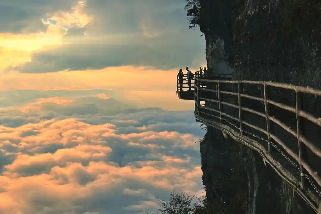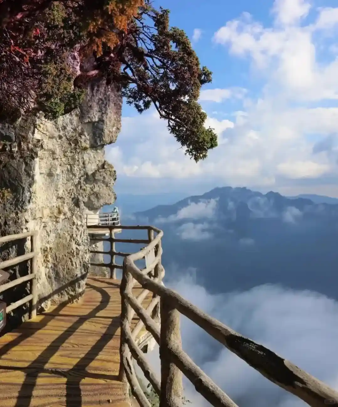 带您体验穿云驾雾的奇妙之旅,天索+云梯就可以直达山顶,真正的无痛爬山,抵达索道上站后换乘露天观光扶梯抵达⼭顶服务区,轻松自在惬意的爬山!⻰头⼭云栈栈道海拔约2200⽶,如盘云的游⻰,横亘于悬崖峭壁⼀侧,素来以其雄奇险峻著称!