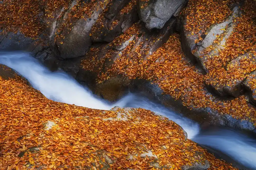 ◈适时我们前往【大小兰沟】与黑熊沟相比,这里有一种不同的感觉,整条沟内遍布青石,青石上长着厚厚的苔藓,上面还飘落着许多红叶,沟内溪水不大,但蜿蜒曲折,又是一种别样的体验。