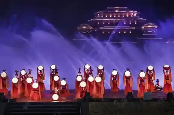 ◈晚上观看【天汉传奇(赠送景点不去不退任何费用)】(演出约45分钟)匠心独具地巧妙运用了兴汉胜境景区中的主体建筑汉文化博览园作为舞台背景,借用灯光的装饰效果营造出一个大汉王朝皇家宫苑的辉煌气象,使人们如身临其境般的地置身于皇家离宫,看到了大汉王朝的繁盛与大气,也感受到了一个繁荣的朝代在历史深处闪耀的光辉与伟大。