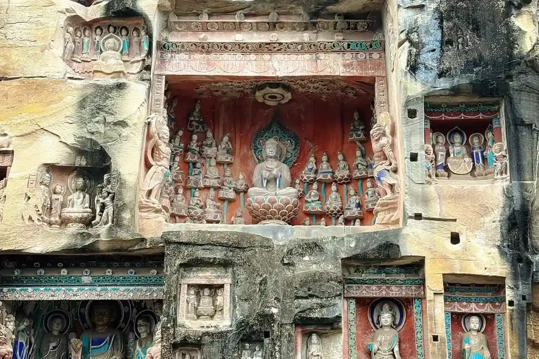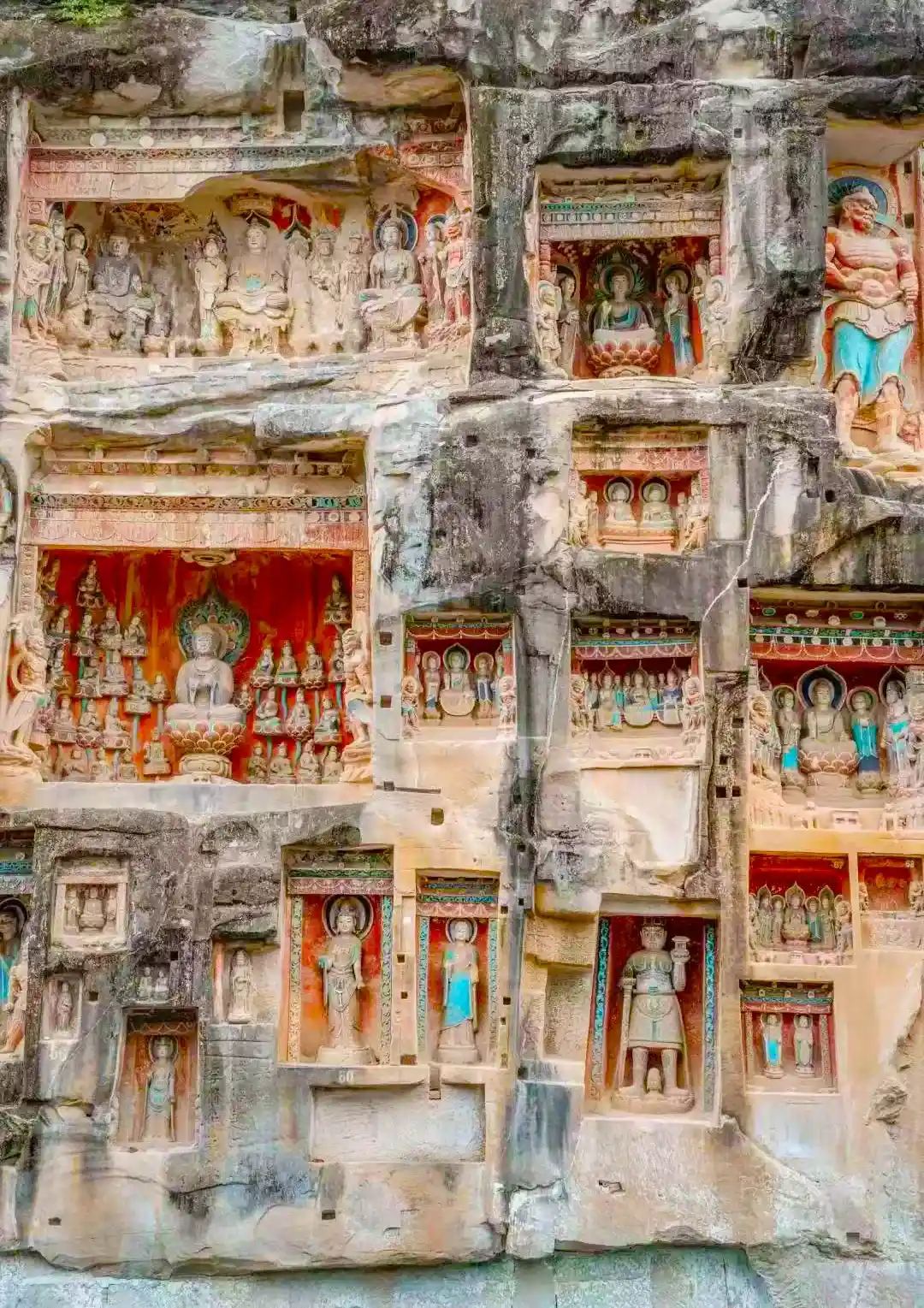 ◈早餐后,游览【南龛石窟】(游览时间1小时)规模宏大,雕嵌玲珑,械栉比相连,它是古代石窟艺术的优秀代表,它是巴州古文化的结晶。南龛石窟岩石壁立,高十余丈,长数百尺,方正如削,列层分龛,镶佛累累,形成了规模宏大的石窟群。造像精巧玲珑,姿态各异,气质浑厚,端庄丰满,神情潇洒,典雅大方,是古代劳动人民巧夺天工的艺术精品,是巴中古文化的历史见证。