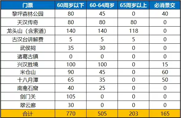 2.不同的入园方式和进行路线会产生不同的索道费用及景交。
