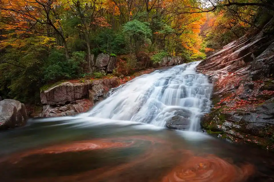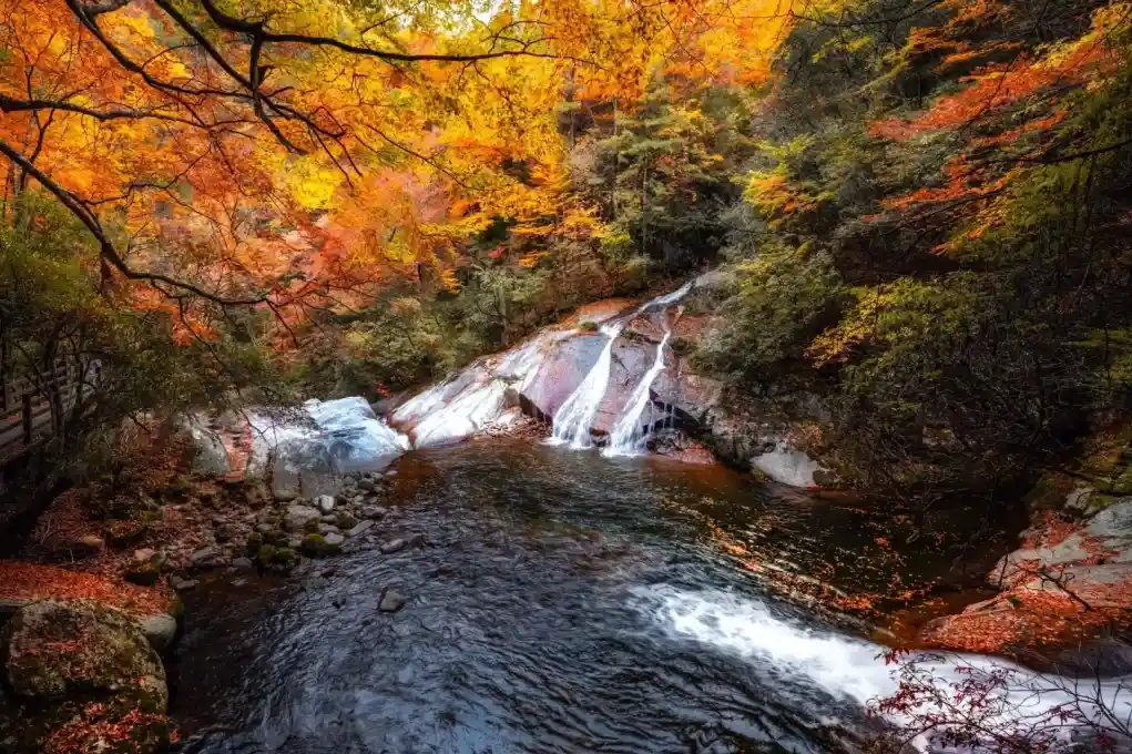 ◈早餐后,前往后乘车前往【十八月潭景区】(约140公里,车程约3小时,游览时间2.5小时),公路穿行在崇山峻岭中,当缭绕的云雾遇见大片的红叶,这又是怎样的一种美呢?长约3.5公里的珍珠沟内密布着18处瀑潭,月潭水景颇为壮观,天下奇绝。珍珠沟河床为清一色的花岗石,大小水潭似颗颗珍珠缀成的长长珠链,沿沟飞泻的瀑流如粒粒珍珠铺就的幅幅珠帘。步入十八月潭,如在画中游,让你陶醉得驻足不前,我们有足够的时间在此玩耍。