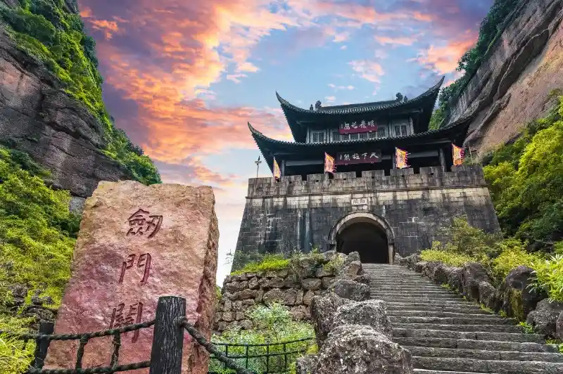 ◈午餐后乘车前往【剑门关风景区】不含索道及景交,自愿消费。(10公里,车程15分钟,游览时间约3小时)剑门山地处四川盆地北部边缘断褶带。剑门关是大剑山中断处形成天然的关隘,是古代出秦入蜀——金牛道的必经之地。蜀汉丞相诸葛亮在此修筑栈道,设关戍守,始称“剑阁”,唐代诗人李白《蜀道难》赞叹“剑阁峥嵘而崔巍,一夫当关,万夫莫开”,更使得剑门关誉满华夏,名扬海内。