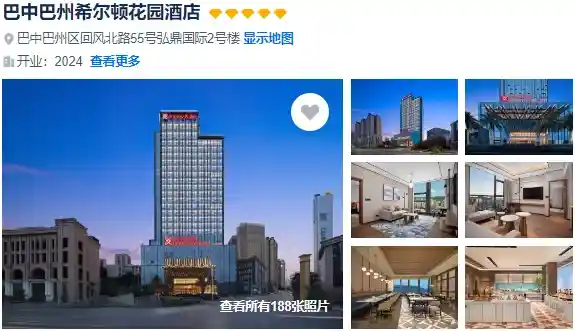 巴中(5钻)*2晚:希尔顿花园/恩阳锦江饭店或同级;