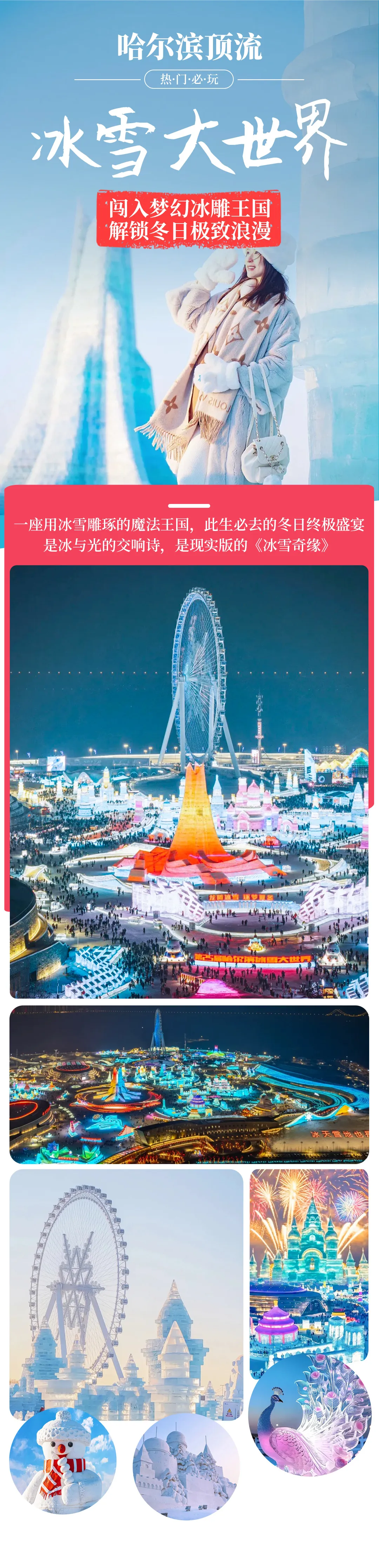 12月20日之前班期:团费未包含冰雪大世界室外馆门票,如在此期间室外馆开业,可付费参观,费用当地现付导游。