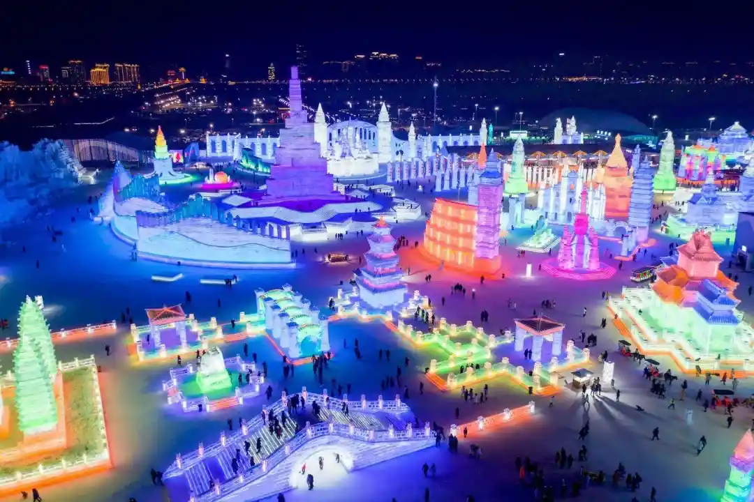 ◈抵达哈尔滨后参观【哈尔滨冰雪大世界室外冰灯展】(12月20日室外冰灯对外营业后安排游览此项,具体开放时间以官方通知为准,需要额外补齐门票328元/人)走进冰雪王国水晶城堡,感受冰城人骄傲!