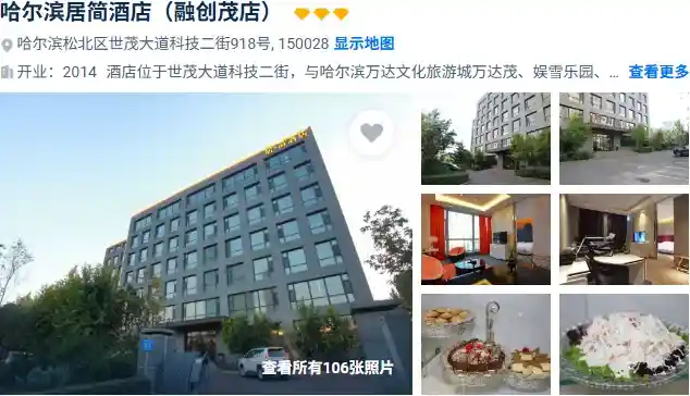 哈尔滨(3钻):居简酒店或景怡酒店或松悦酒店或同级