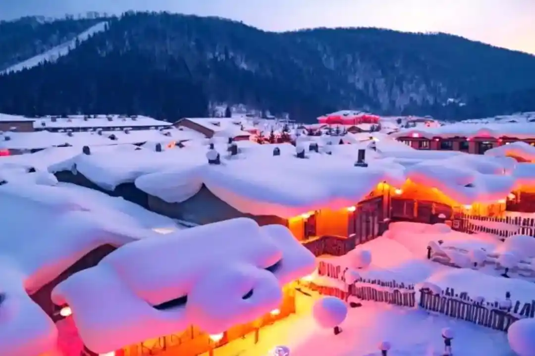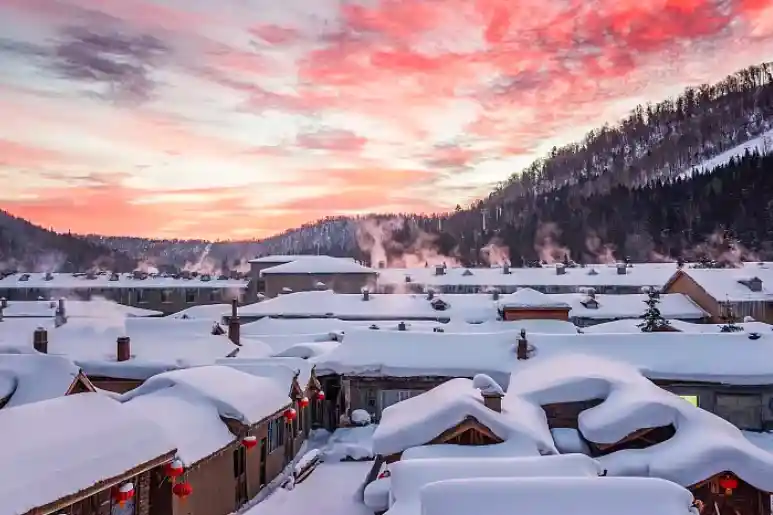 ◈可在【雪乡棒槌山栈道穿越】(游览约30分钟)俯视梦幻雪乡全景,欣赏木栅栏在淡粉色的雪地上拉出长长的影子,屋顶上飘着缕缕轻烟,偶尔传来几声犬吠,在洁白无暇的雪地上踏上自己的小脚印,在洁白的雪世界里徜徉。