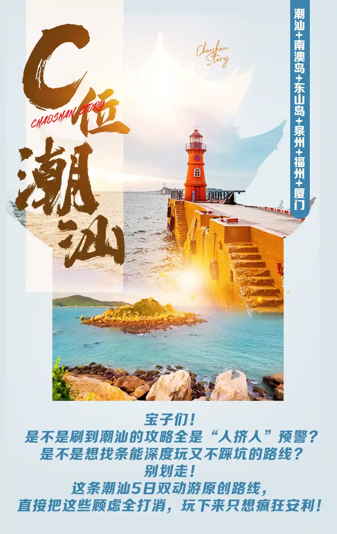 C位潮汕双动5日双人立减300!探秘潮汕风情,奢享五钻住宿,尝三大特色餐,解锁小众美景与独特体验