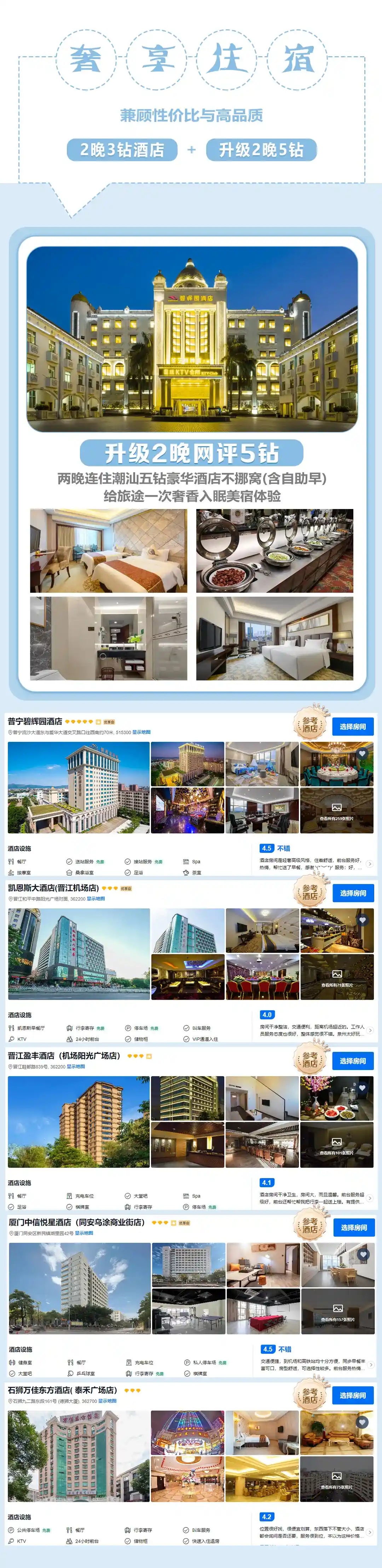 住宿:万佳东方石狮店/晋江凯恩斯酒店/晋江盈丰酒店或同级