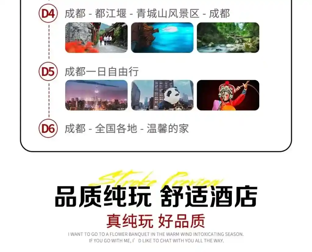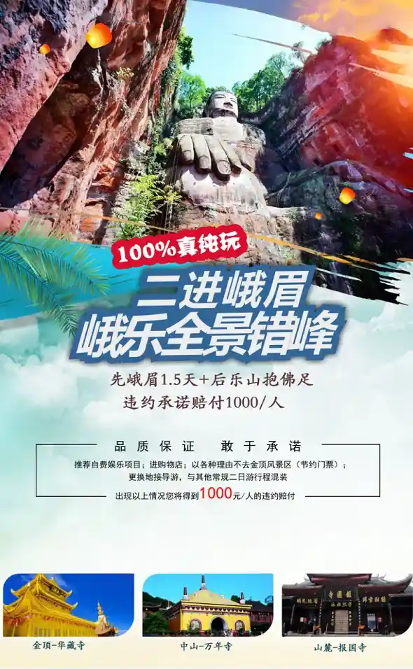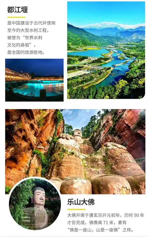 5、门 票:行程中所含的景点首道大门票峨眉山门票、乐山门票、都江堰、青城山