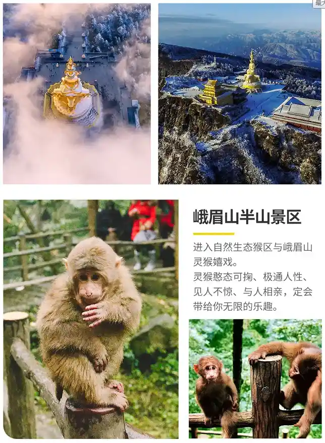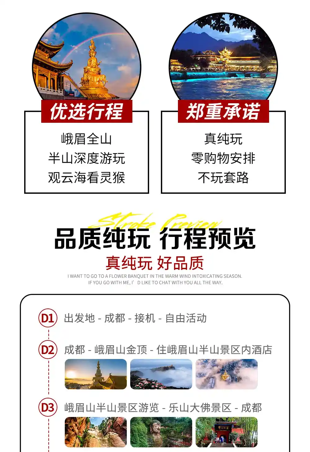 10月-12月底价格已出【灵动峨眉】行程升级2+1陆地头等舱+成都、峨眉山、乐山、都江堰、青城山、成都1日自由行
