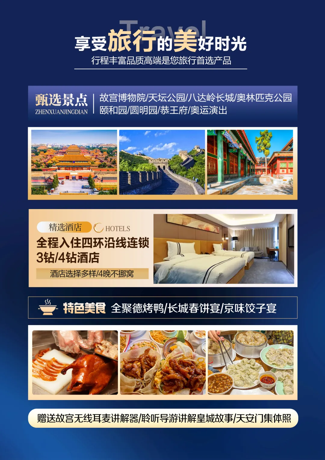 美食安排:全聚德烤鸭 长城自助餐 京味饺子宴!