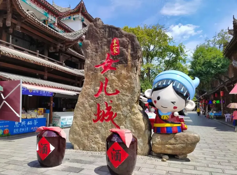 后乘车前往游览【恩施女儿城景区】(游玩时间约1.5小时)土家女儿城位于湖北省恩施市区七里坪,作为全国第八个人造古镇,土家女儿城合理且精心的谋划了整体建筑风格,仿古与土家吊脚楼相结合,完美的体现了土家族的民风民俗。