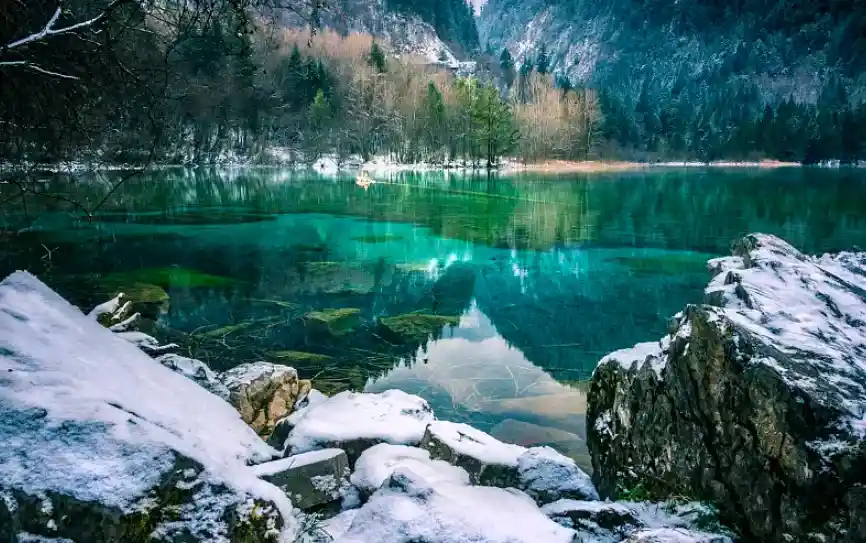 ◈【犀牛海】是一座长约2.2公里、水深17米、海拔高度2400米、最深的地方可以达到40多米的天然湖泊。是树正沟最大的海子。犀牛海的南端有一座栈桥通过对岸。传说古时候,有一位身患重病、奄奄一息的藏族老喇嘛,骑着犀牛来到这里。当他饮用了这里的湖水后,病症竟然奇迹似的康复了。于是老喇嘛日夜饮这里的湖水,舍不得离开,最后便骑着犀牛进入海中,永久定居于此,这个海子便称为犀牛海。如果你有缘,你就可以看到海底隐隐约约的犀牛。