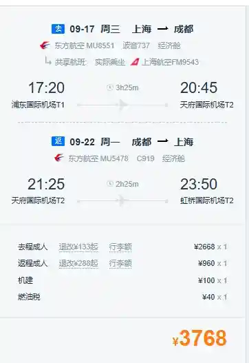 【交通】上海-汉中往返;往返经济舱机票含行李(7KG手提+20KG托运),我社以提供的名单出票,请报名时仔细核对客人信息;团队机票去程不使用,返程作废;
