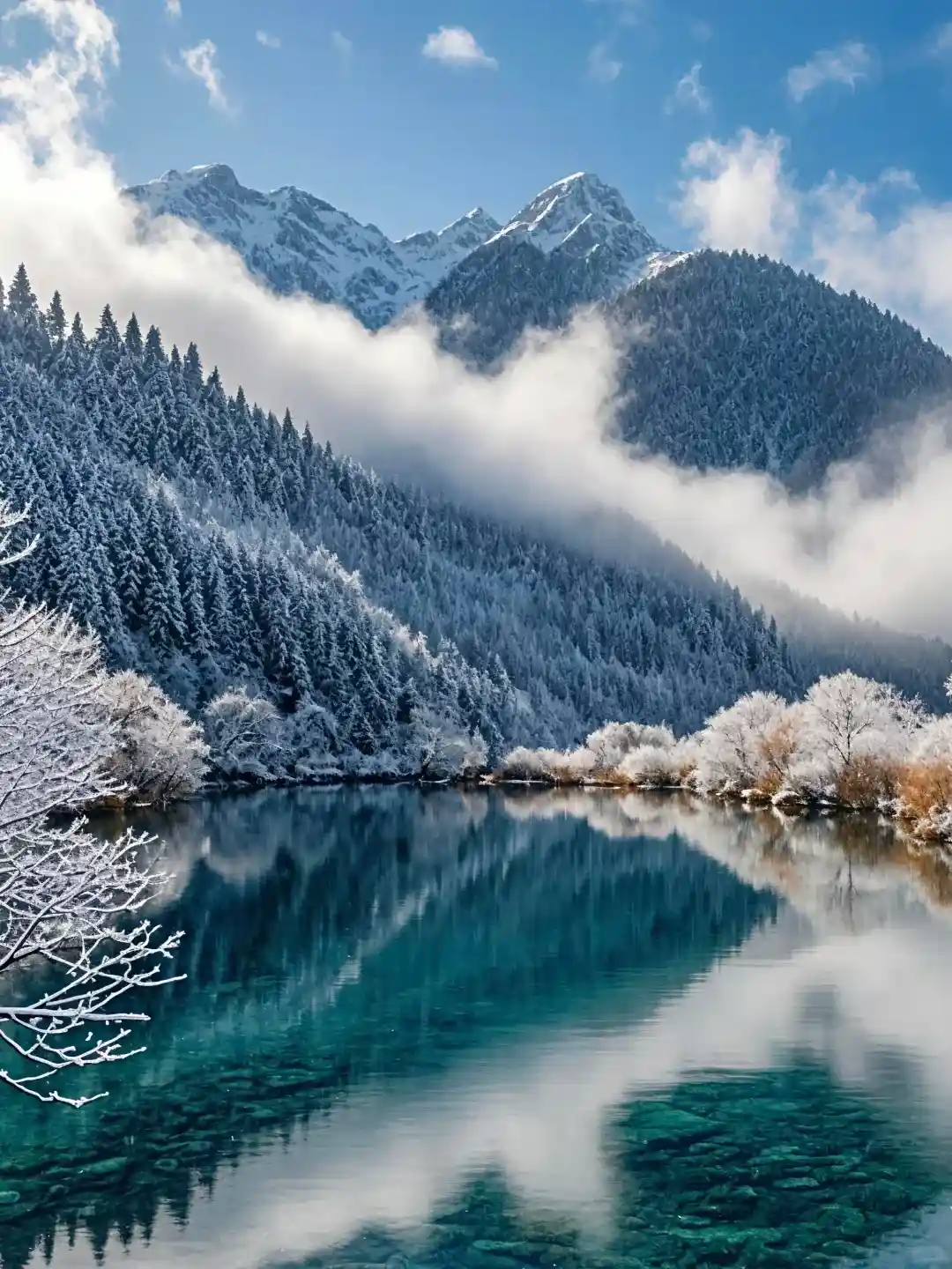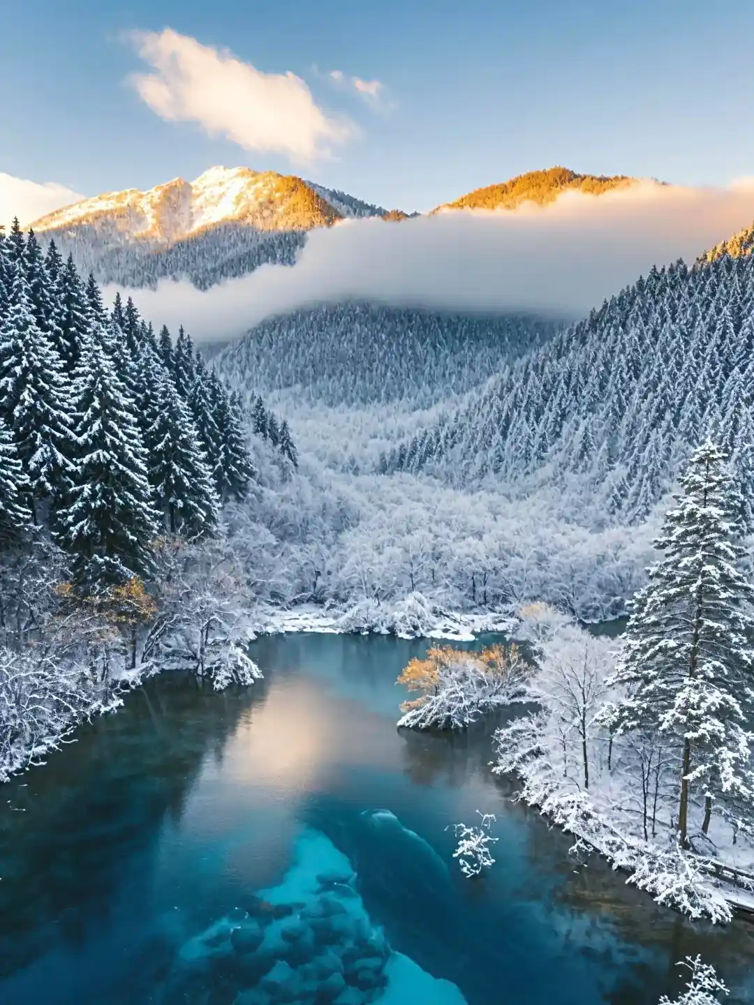◈【长海】长海是九寨沟最大的海子。长海顺山弯去,头深藏在层峦叠嶂的山谷之中。长海尽头连绵的山峰终年积雪,银妆素裹,海拔都在4000—5000米以上。