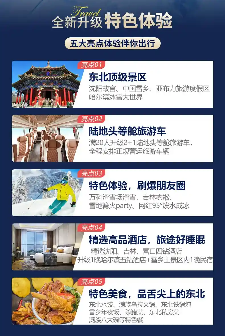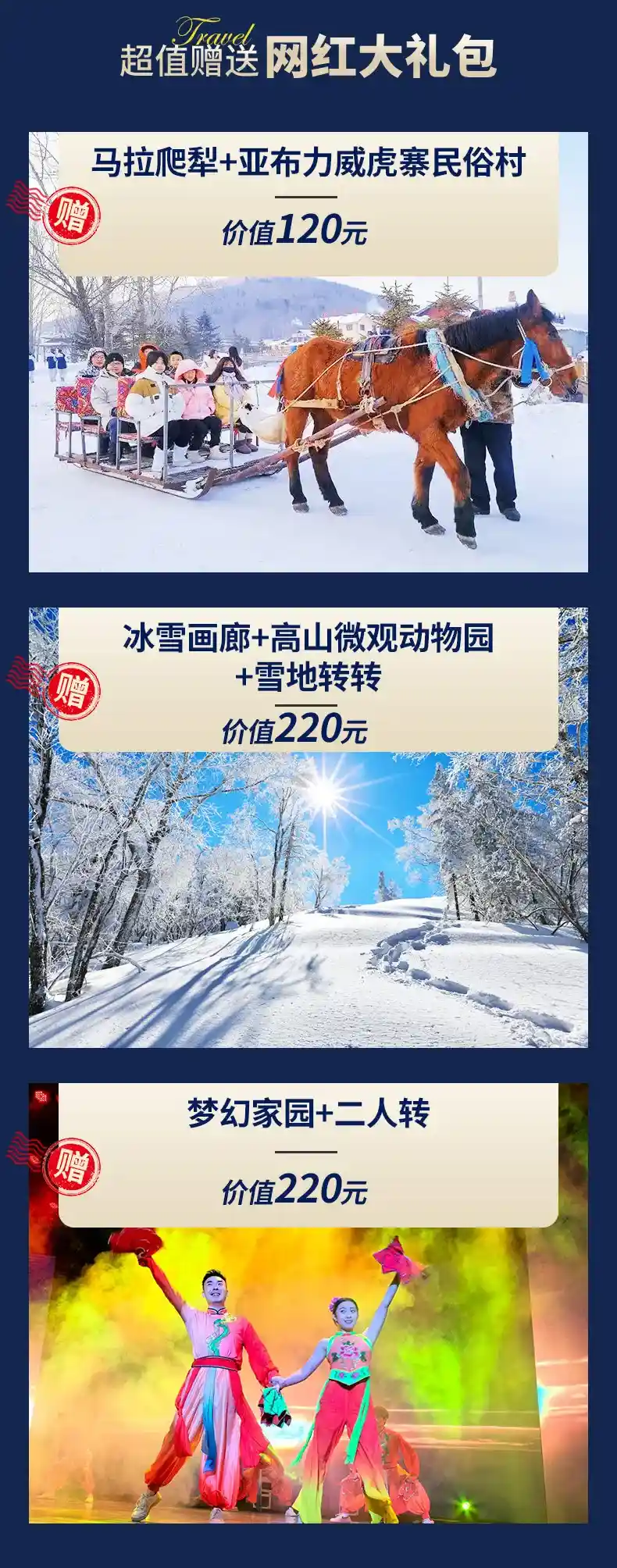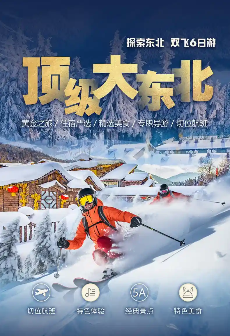 顶级大东北双飞6天不带钱包去旅行¥2899起丨100%纯玩0自费丨2+1陆地头等舱|上海自组丨吉祥航空切位丨四钻+五钻酒店+雪乡民宿丨安排送机服务让您出行无忧