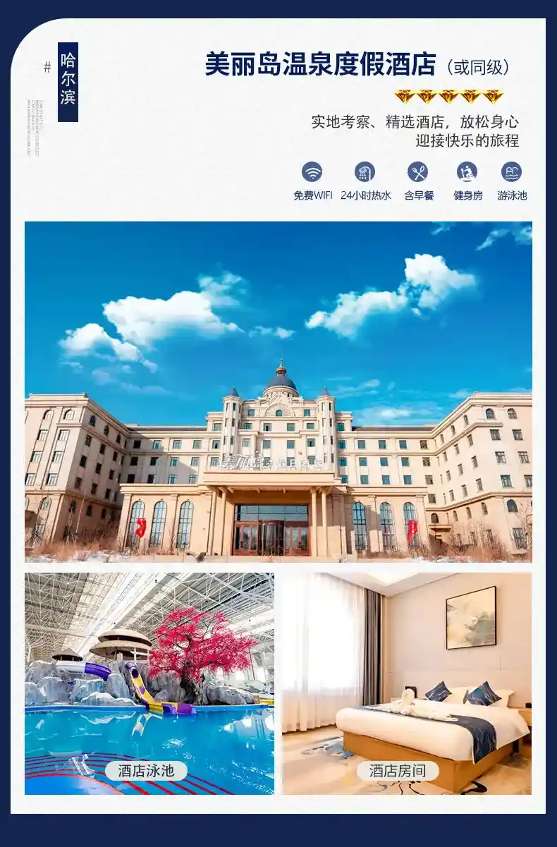 哈尔滨五钻参考酒店:美丽岛温泉度假酒店、谭格美酒店、融创施柏格酒店或同级