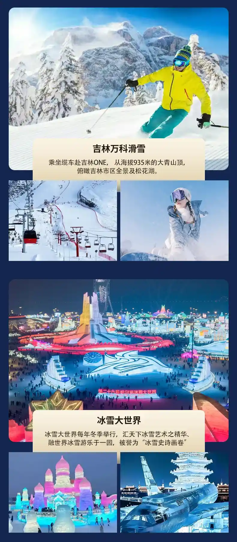 备注:每年万科雪场11月11日前后开放 如天气原因不开放改为吉林博物馆