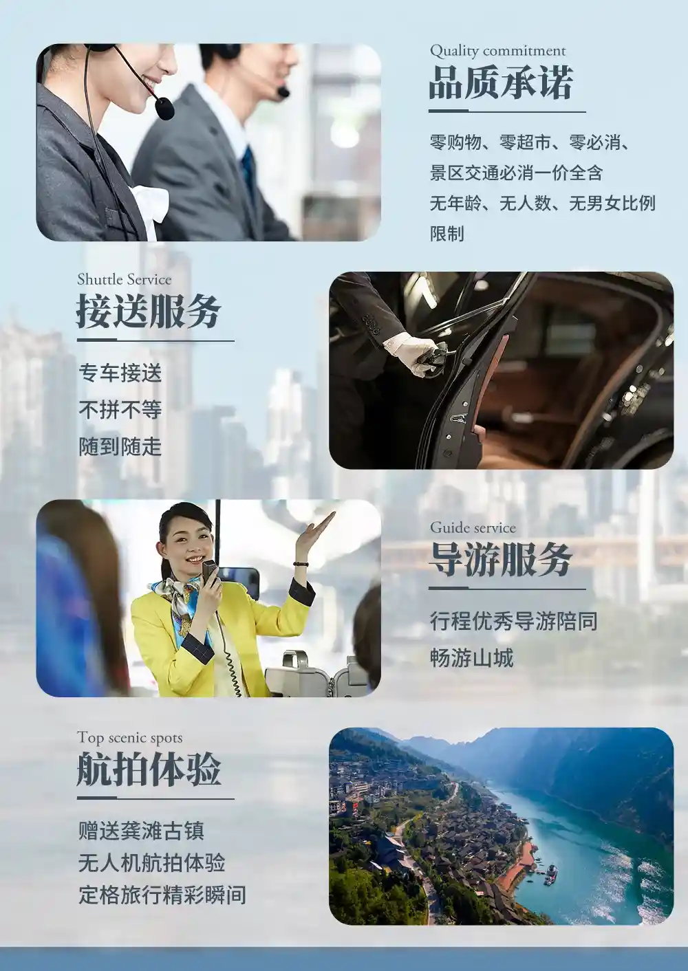 特别说明:赠送龚滩古镇无人机航拍体验(如遇大风、大雨等恶劣天气无人机不能飞的情况下则自动取消,赠送项目为我社品牌建立,突出行程特色,是无附加条件的赠送,因不可抗力无法参加或客人自身原因不参加,不退费不换等价项目。报名即认可该条列!)