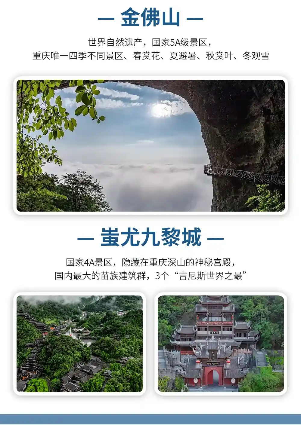 【金乌藏娇】经典重庆纯玩南川金佛山/天星小镇/九黎城/龚滩古镇/乌江画廊游船/白公馆/磁器口/李子坝/解放碑/洪崖洞五日游
