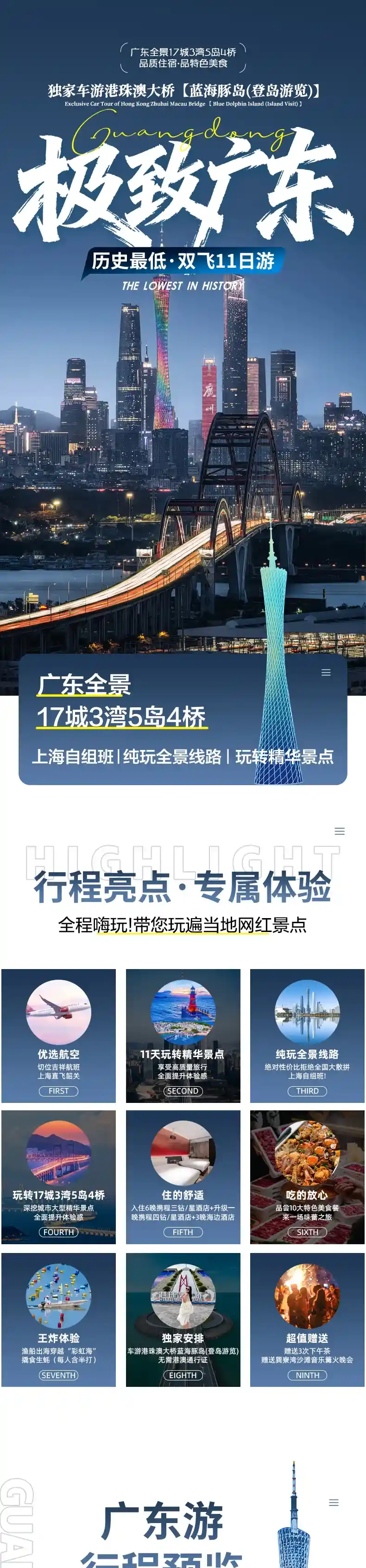 『历史最低•极致广东』双飞11日•¥2899/人•广东全景17城3湾5岛4桥•品质住宿•品特色美食•独家车游港珠澳大桥【蓝海豚岛(登岛游览)】