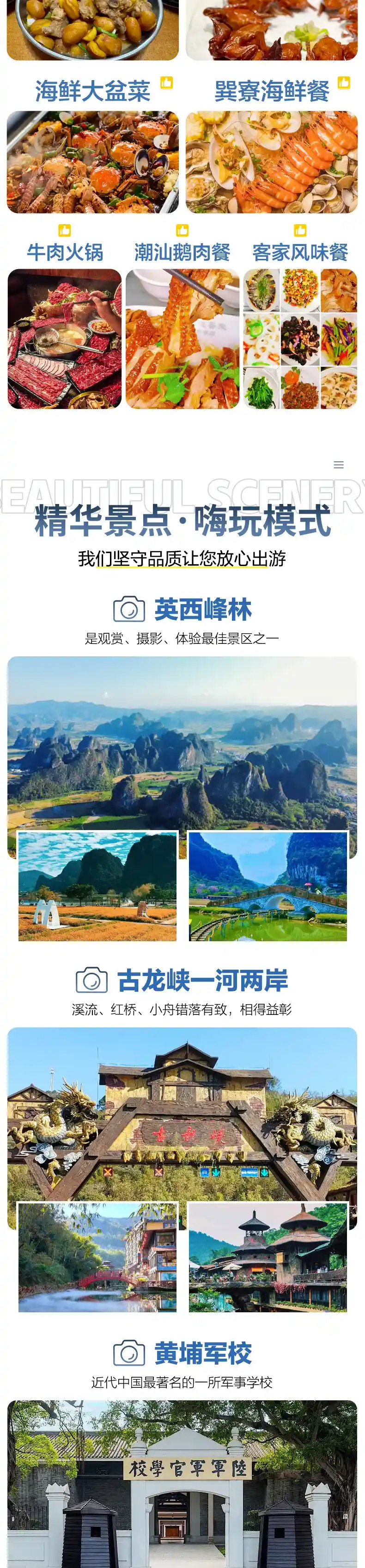 ◆吃的放心:品尝10大特色美食餐(特色清远鸡.古法烧鸡餐.39道大龙凤.西江风味餐.特色乳鸽餐.海鲜大盆菜.巽寮海鲜餐.牛肉火锅.潮汕鹅肉餐.客家风味餐)