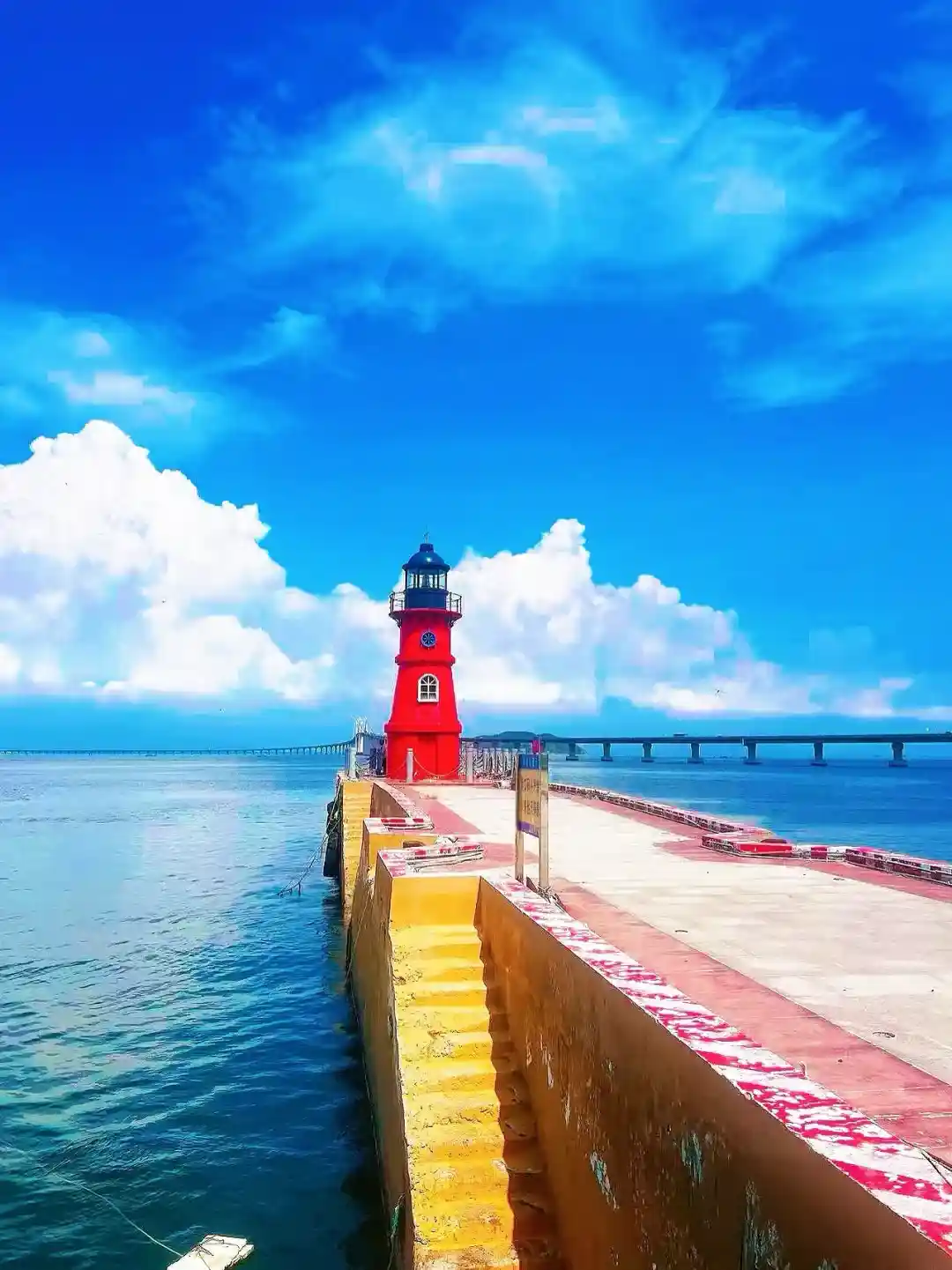 ●合影留恋【长山尾灯塔】(游览时间30分钟)南澳岛上唯一能看到南澳大桥的灯塔,通体红色的它位于长山尾码头,紧挨着启航广场,登岛后一眼便能瞧见。长山尾灯塔静静守候着一旁的跨海大桥旁,像极了一幅油画。