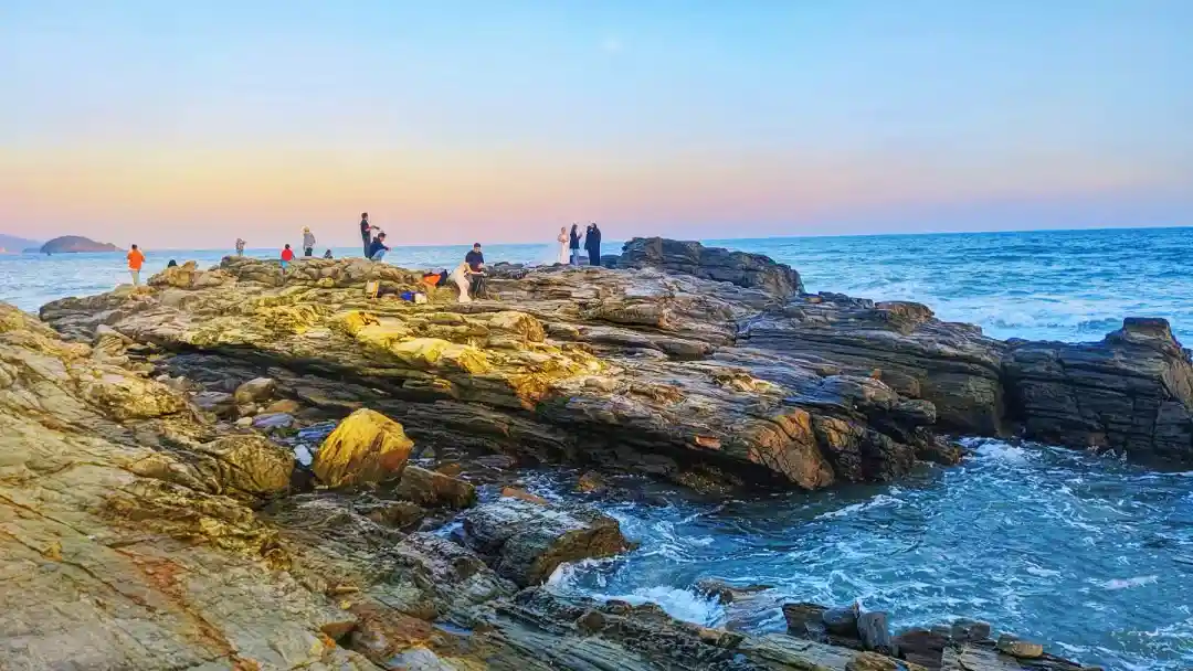 ●乘车前往游览【磨子石公园】(游览时间50分钟)作为巽寮湾十八景的磨子石是巽寮浅海石林景观的典型代表。据说每逢风云变幻时节,巨磨飞转,呼呼作响,周围各种各样形态奇特的石群吸引了国内外数以百万计的游客前来观光旅游,感受“风涛摧磨”的鬼斧神工之妙。同时也是热门的徒步海岸线、听涛、看海、观石、游泳、抓鱼的胜地!不到磨子石,别谈巽寮湾,而磨子石海岸线是惠东最漂亮的海岸线之一。