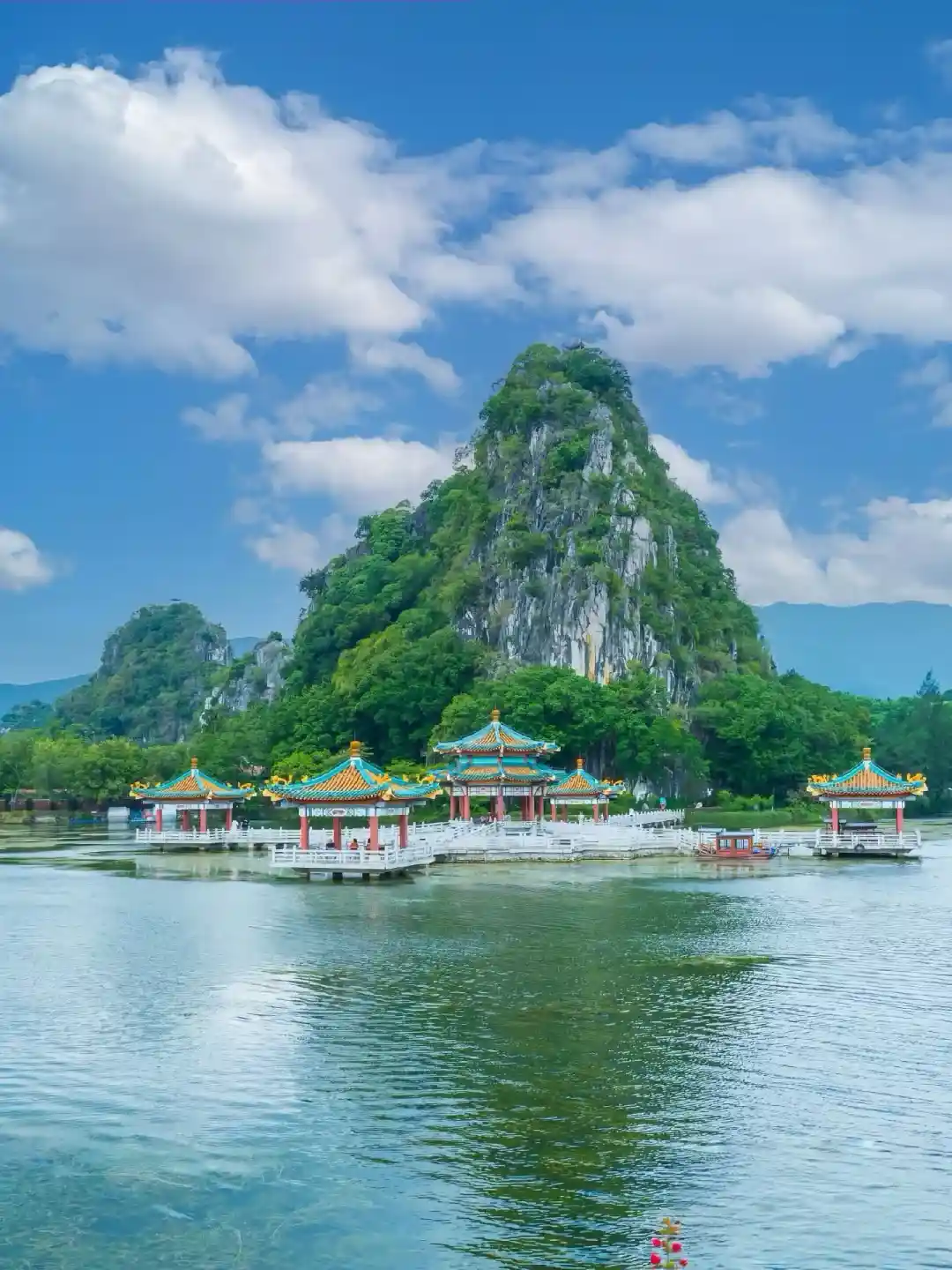 ●乘车前往国家AAAAA级景区【肇庆七星岩】(游览时间90分钟)景区由五湖、六岗、七岩、八洞组成,面积8.23平方公里,湖中有山,山中有洞,洞中有河,景在城中不见城,美如人间仙景。七星岩以喀斯特岩溶地貌的岩峰、湖泊景观为主要特色,七座排列如北斗七星的石灰岩岩峰巧布在面积达6.3平方公里的湖面上,20余公里长的湖堤把湖面分割成五大湖,风光旖旎。被誉为"人间仙境"、"岭南第一奇观"。国家级文物保护单位七星岩摩崖石刻是南中国保存得最多最集中的摩崖石刻群,所以取名为七星岩。