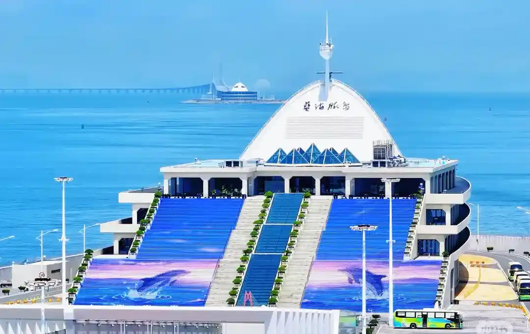 ●前往打卡【港珠澳大桥游--坐车上桥】【蓝海豚岛(登岛游览)】(全程140分钟)港珠澳大桥游 大桥旅游线路地处于大桥香港、珠海、澳门三地口岸之间,位于海关监管区和口岸限定区域内,在该区域开展旅游,是全国范围内首次突破现有政策的创新。珠海口岸外形按照"如意"造型设计,口岸核心建筑群结合贯穿南北的中轴线形成"三点一线"的布局,诠释口岸"一地三通,如意牵手"的理念。大桥收费站是一个"珍珠贝"造型,与大桥"珠联璧合"的设计理念相呼应,收费大橱犹如张开的口含珍珠的贝壳,与珠海的海洋文化相契合。蓝海豚岛(登岛游览)蓝海豚岛(东人工岛)是只有参加港珠澳大桥游的游客方可登岛游览的地方。岛上设有游客打卡点、展厅、观景平台、游客服务中心等旅游配套设施。