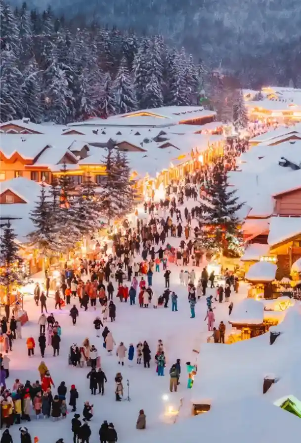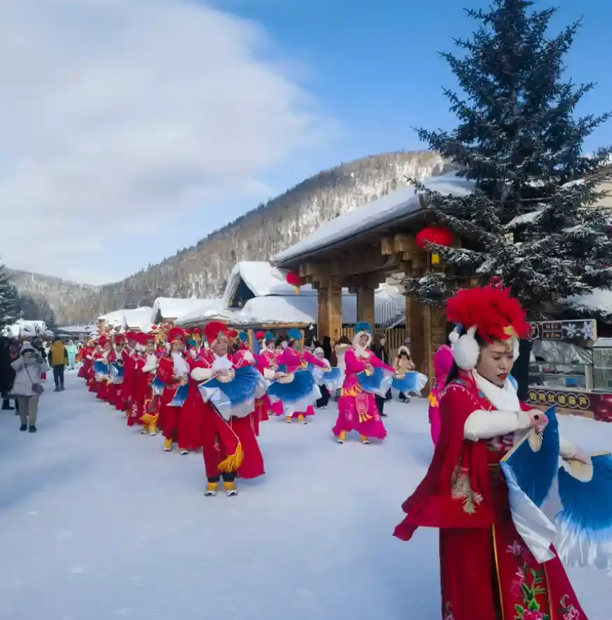 晚餐后,漫步【雪韵大街】,观看【花车巡游】【东北大秧歌】,每晚秧歌队员与花车队巡游,景区秧歌不仅成为雪乡一道靓丽的风景,更深得各地游客喜爱。【千人秧歌+雪地篝火】当夜幕降临,红彤彤的大灯笼全都亮起来,雪乡进入了另一个世界。东北大秧歌—最具地方特色的休闲生活方式,现在扭秧歌的人越来越少,但热爱他的人却越来越多。千人篝火晚会—所由游客集聚到篝火场地,在雪的童话世界里点燃熊熊篝火,每年都有不少兴奋地游客上演“疯狂赤裸篝火”。