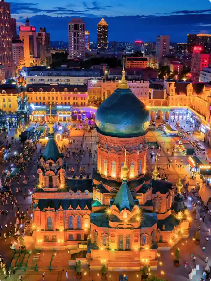 早餐后,乘车前往哈尔滨游览【中央大街】40分钟,逛一逛拥有71座欧洲各风格建筑、亚洲最长的商业步行街,体验踩在坚实而精巧、光滑而细腻的石头路面上,置身于建筑艺术长廊中,感受充满异国情调百年老街的无穷韵味【圣•索菲亚教堂广场】10分钟,索菲亚教堂始建于1907年3月,原是沙俄修建中东铁路的随军教堂,占地面积721平方米,通高53.35米,平面呈拉丁十字布局,是典型的拜占庭风格建筑。