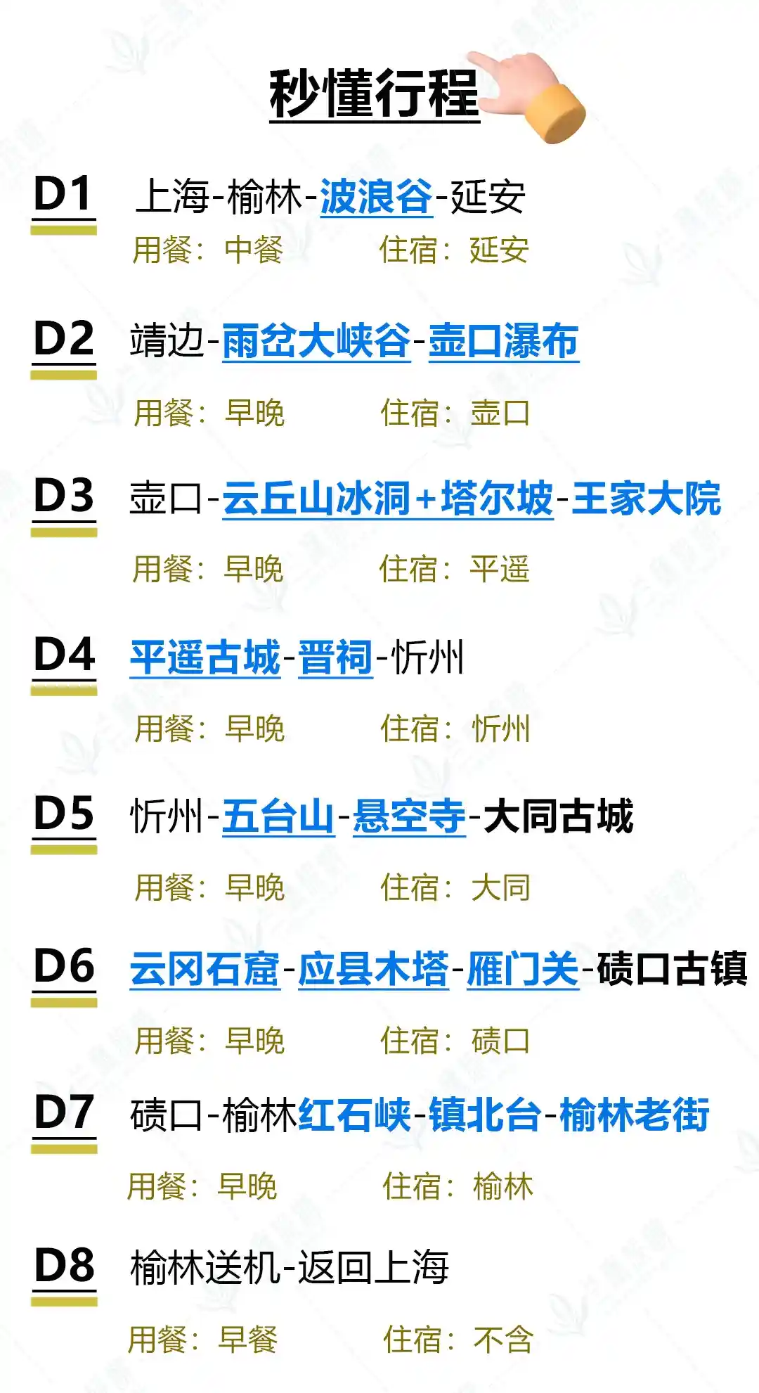 尾单¥1699起【晋陕大放价】双飞8日•山西全景+陕北双谷|上海自组•纯玩0购物0自费•升级1晚酒店