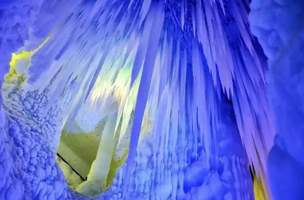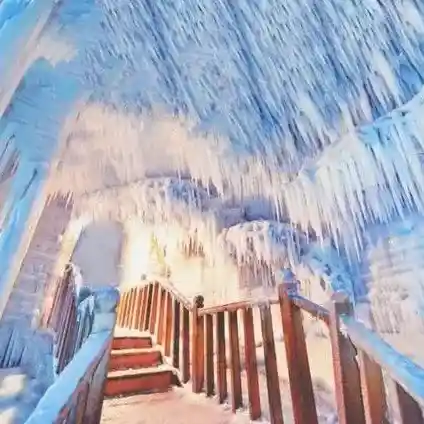 ◎参观【云丘山冰洞群】(参观约1小时),沿洞顶延展而下的冰锥群仿佛随时会落下,既惊险又震撼。冰笋、冰菇、冰葡萄等天然冰体配上五颜六色的灯光,绝对是一场视觉上的饕餮盛宴。