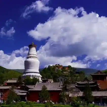 外观五台山标志性建筑大白塔,塔高56.4米,通体洁白,被誉为“清凉第一圣境”。