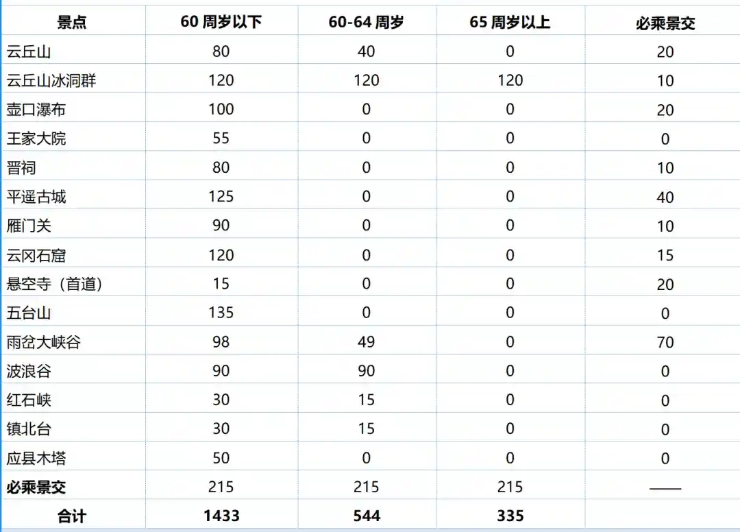 【方案2】在不影响正常行程前提下替换为其他山西景点(若产生门票请自理)