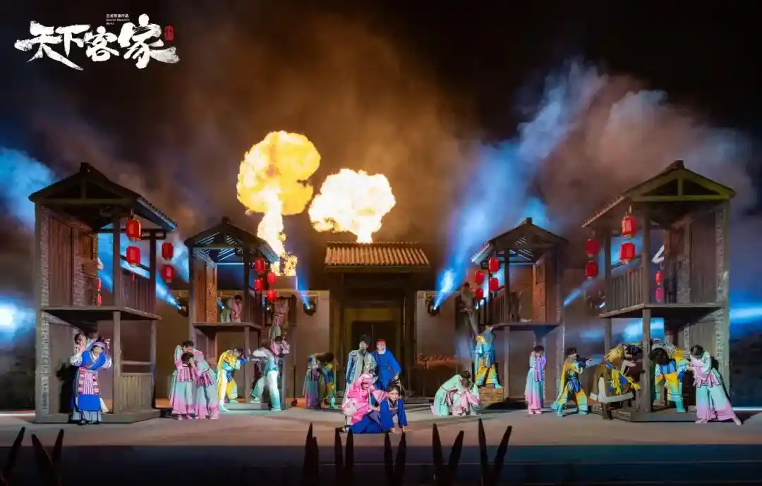 ■晚上:全球首部围屋实景剧《天下客家》,300名演员演绎客家人五次大迁徙史诗。通过戏剧、舞蹈、音乐、灯光、装置等多种艺术形式相结合,生动地展现了客家人的生活场景、文化传统和精神风貌。这种多元化的表演形式能够给观众带来强烈的视觉和听觉冲击,让人们仿佛穿越时空,回到了过去的客家生活中。