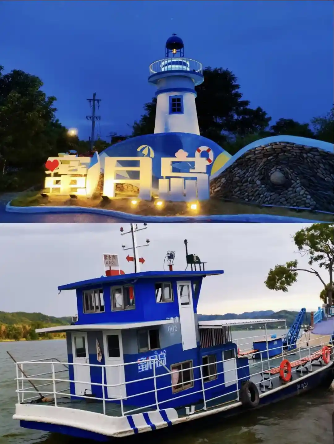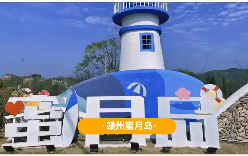 ■上午:【赣县蜜月岛景区 - 赣江上的圣托里尼】蜜月岛景区位于江西省赣州市赣县区湖江镇境内的赣江上,是一个由赣江江水环绕而成的天然江心岛。因其形状酷似一颗爱心,加之岛上风光秀美、氛围浪漫,故得名“蜜月岛”。它是赣州近年来新兴的网红旅游打卡地,以浪漫主题、田园风光、渔家文化和亲子娱乐为特色。天然爱心造型(浪漫之源)岛屿的整体形态自然天成,从空中俯瞰宛如一颗巨大的“爱心”镶嵌在碧绿的赣江之中,这独一无二的地理特征使其成为情侣们向往的浪漫圣地,象征着永恒的爱恋。绝美的自然风光(拍照圣地)岛上绿树成荫,花海缤纷(根据不同季节种植有不同的花卉,如马鞭草、向日葵等)。清澈的赣江水环岛而过,远山如黛,构成了一幅美丽的江南水乡画卷。无论是日出日落,还是星空夜景,都极具诗意,是摄影爱好者的天堂。鲜明的浪漫主题(圣托里尼的浪漫)岛上设置了大量与爱情相关的打卡装置:如爱情长廊、彩虹滑道、网红秋千、表白牌、心形雕塑等,非常适合情侣拍照和求婚仪式。同时也配备了众多亲子娱乐设施,如小火车、儿童游乐场等,使其成为家庭出游的好选择。