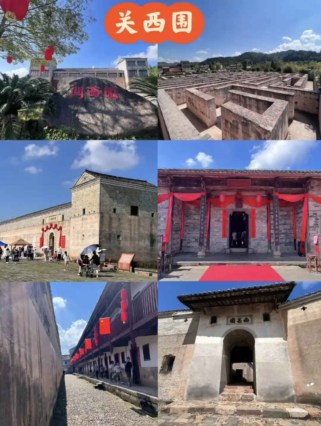 ■下午:参观【关西新围】散落在民间的故宫】:位于江西龙南县城东约15公里处的关西圩旁,始建于1798年(清嘉庆三年),于1827年(道光七年)完工,历时近29年,系关西名绅徐名均所建。 据专家考证,关西新围是迄今国内发现保存最为完整,结构、功能最为齐全的一处有代表性的赣南客家围屋。1992年关西新围列为龙南县重点文物保护单位。2001年7月经国务院批准被列为第五批全国重点文物保护单位。中国国内目前发现建筑面积最大的围屋之王,有“东方古罗马城堡”之称,占地总面积7700多平方米。新围依山傍水,绿竹、池塘、农田、蓝天交相辉映。围屋呈长方形,墙高10多米,壁厚1米,四角有高大的“炮角楼”。墙上错落有致地布有许多枪眼和炮窗,森严肃穆。