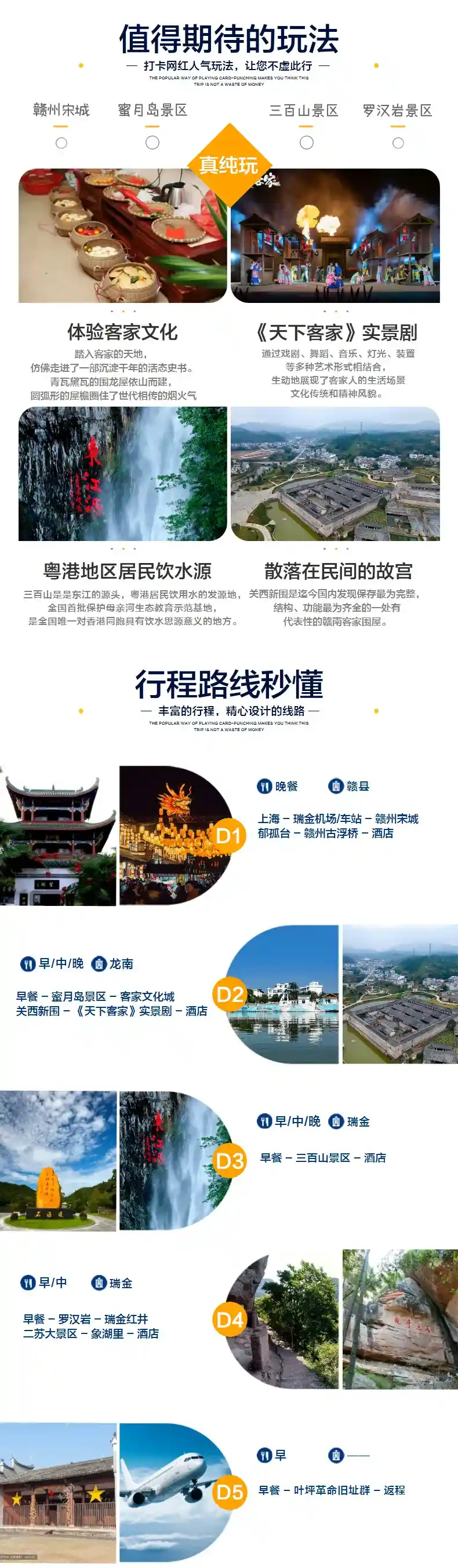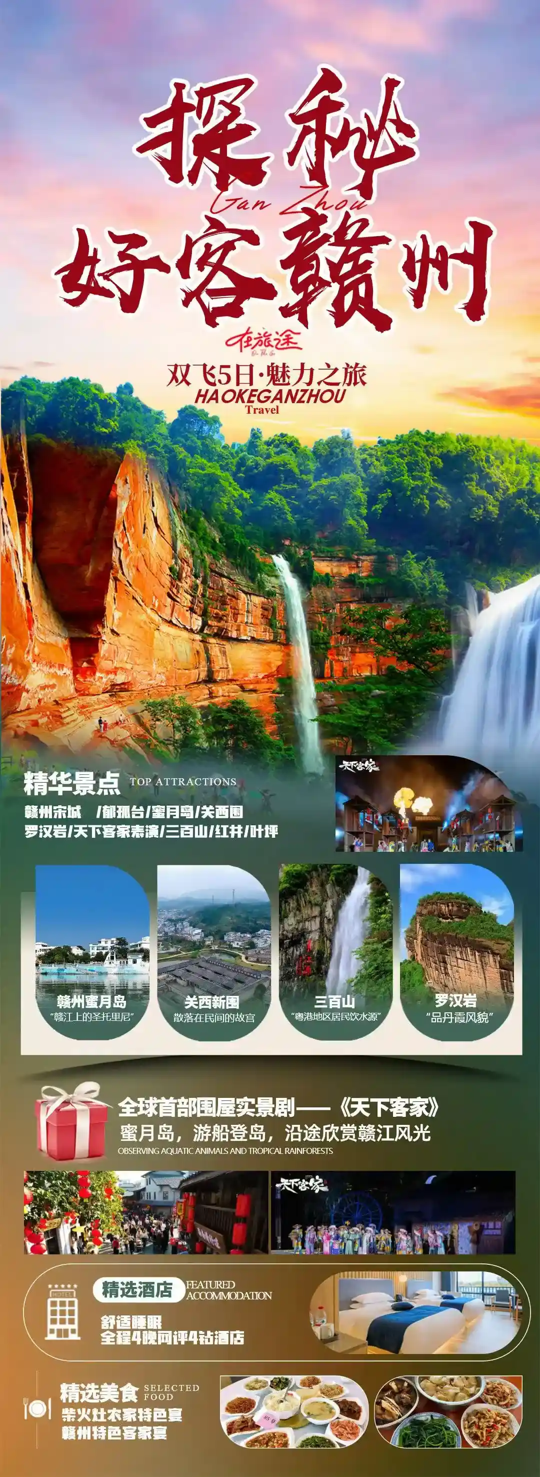 【好客赣州★穿越宋风客韵】1999赣州双飞5日游●100%纯玩·蜜月岛-三百山-关西围-罗汉岩-赣州宋城(4早6正,全程入住4钻酒店)