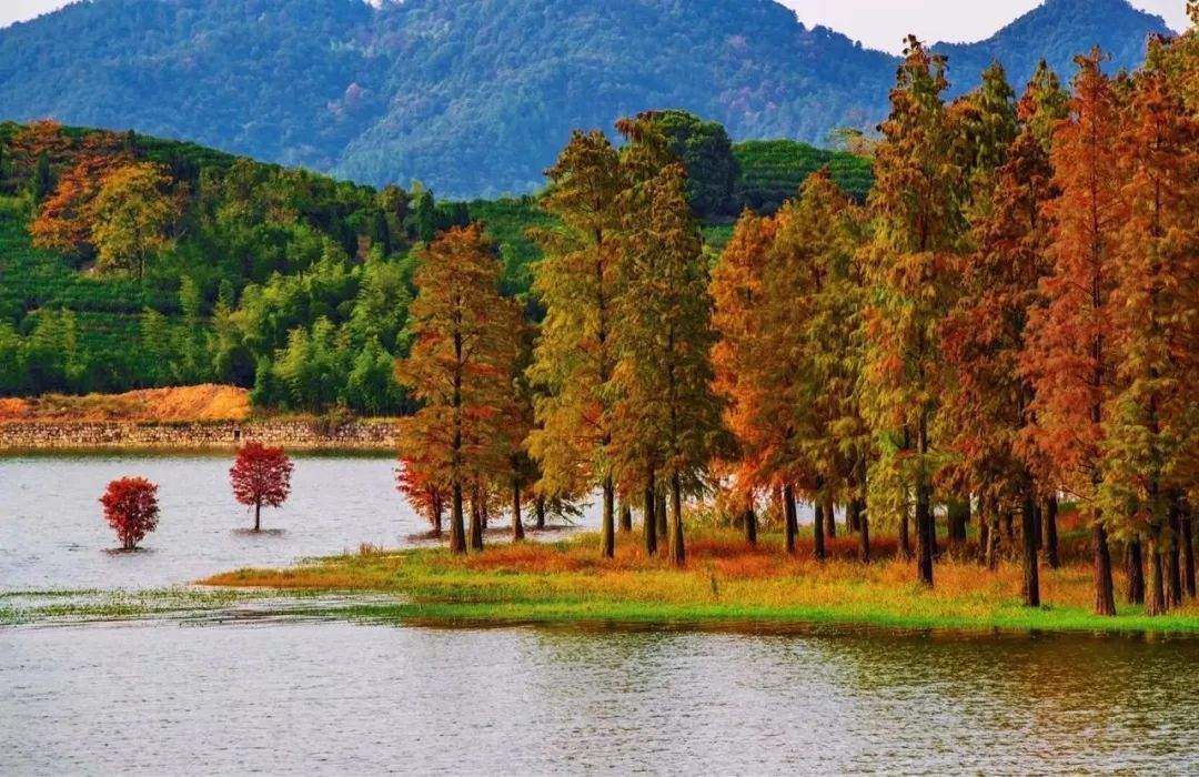 🌈四明湖欣赏如诗如画的水上红杉林!