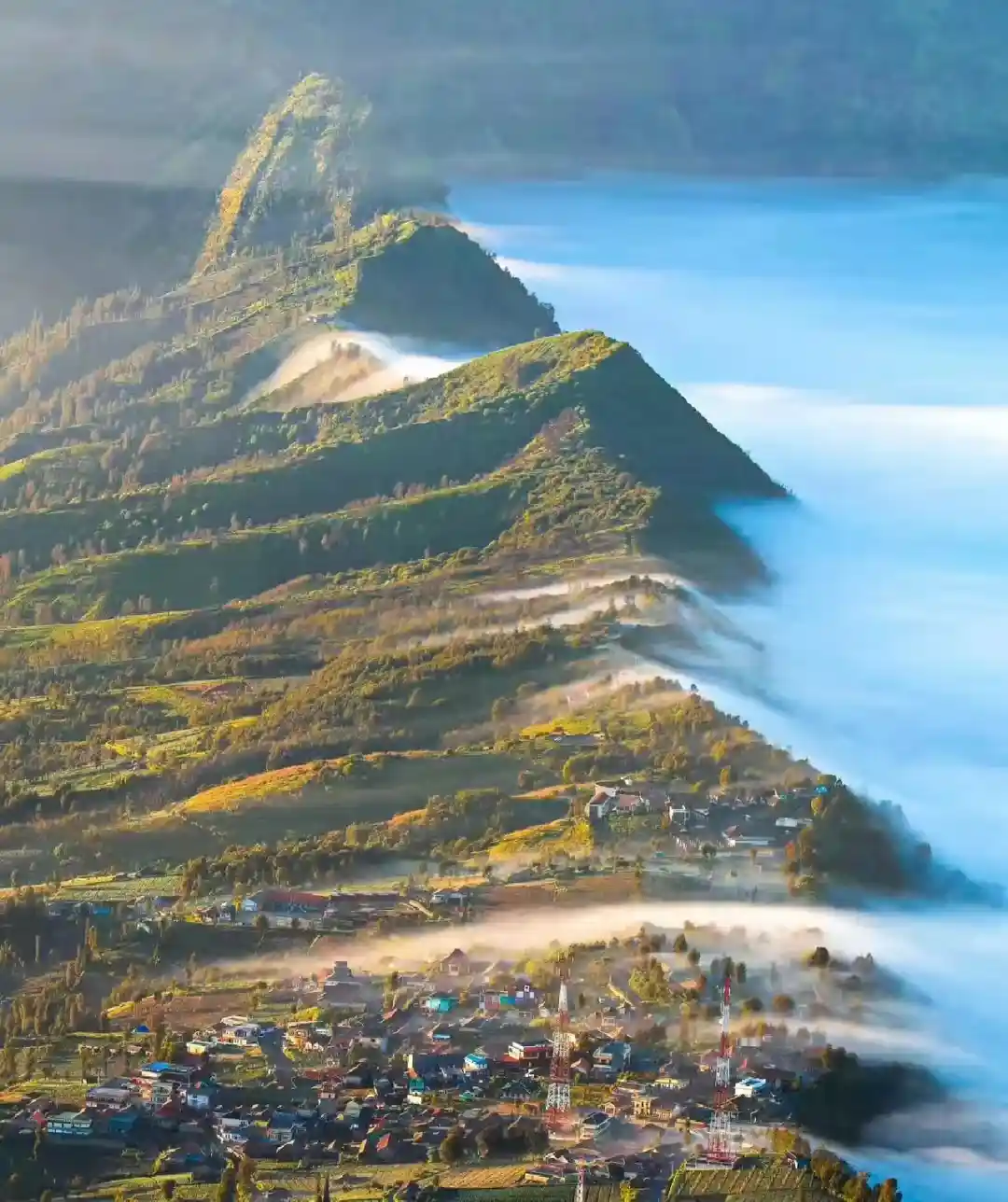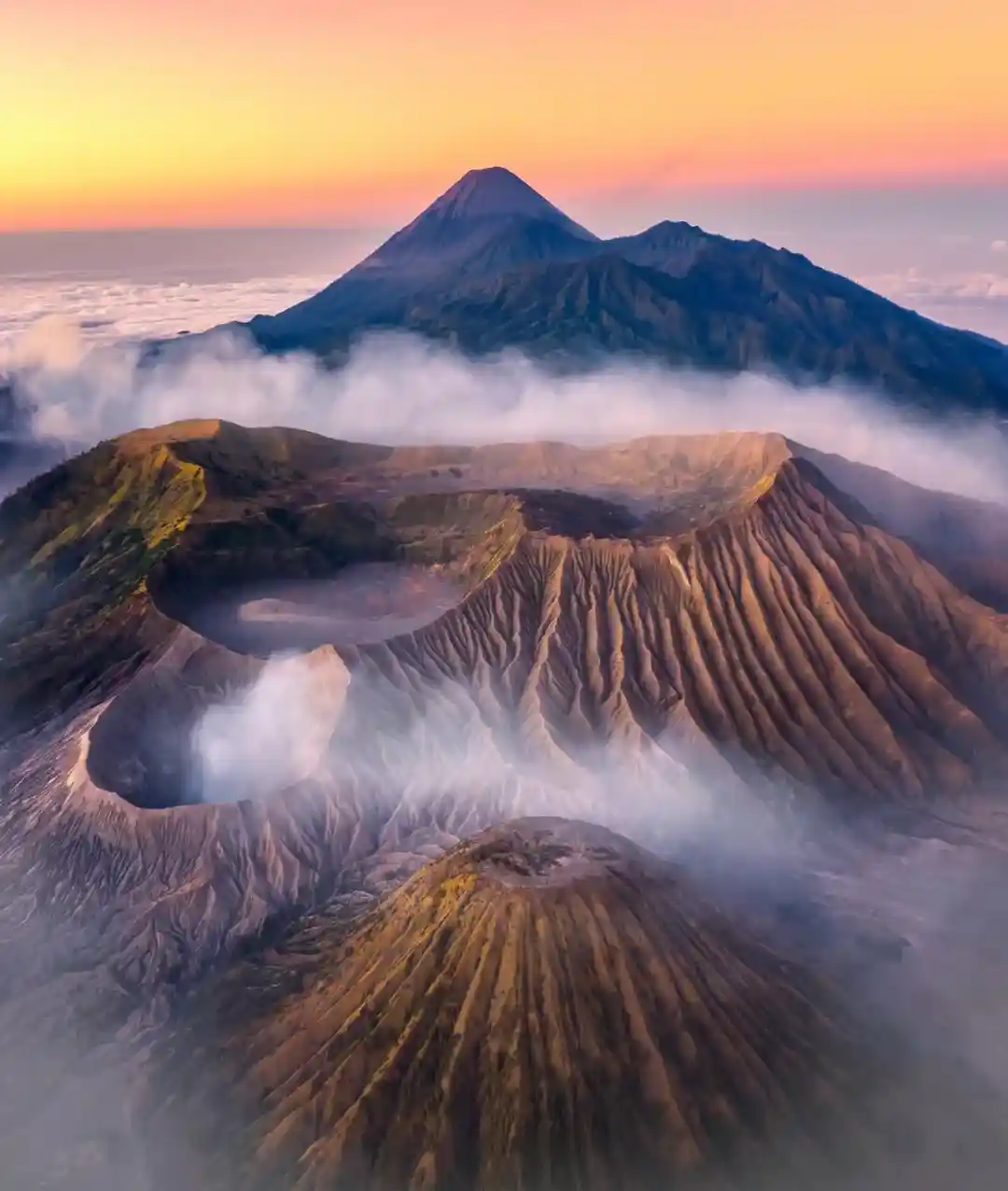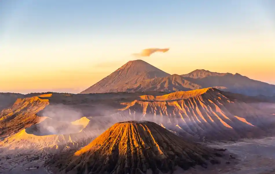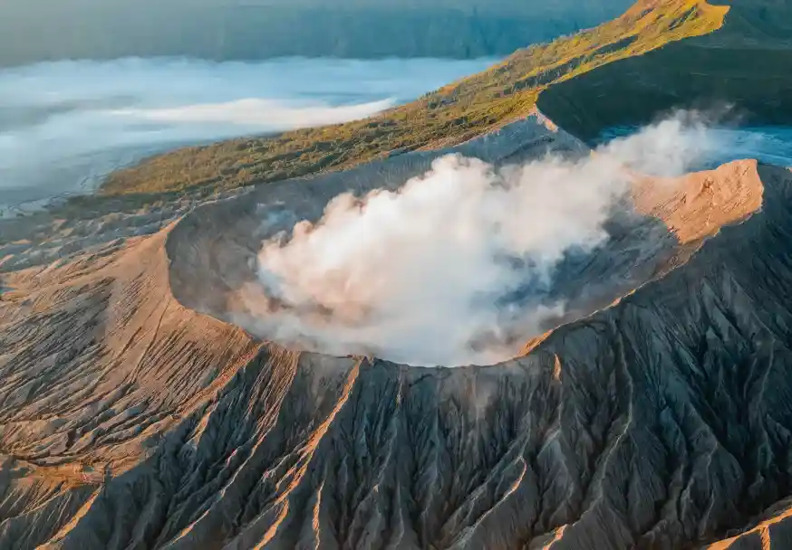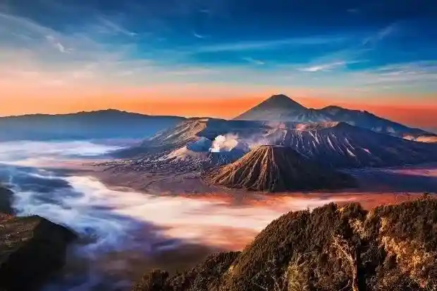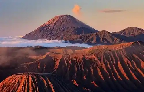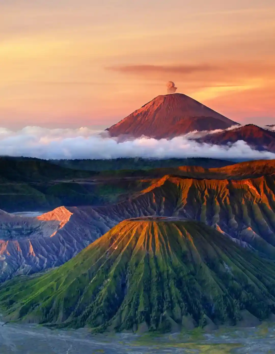 布罗莫火山:世界的尽头,东爪哇皇冠上的宝石,它被评为东南亚的奇迹之一。布罗莫火山是一座未完全熄灭的火山,不断喷发。烟囱口处不断冒着硫磺的白烟。