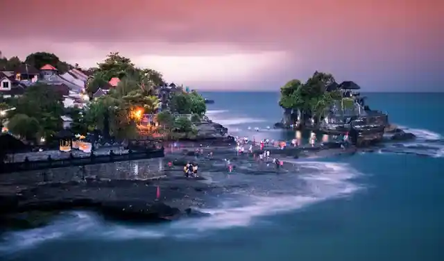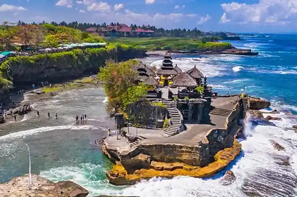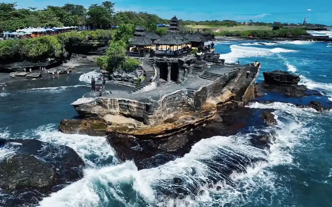海神庙:意指海中的陆地是印尼巴厘岛中西部海岸的一座寺庙,盖在一个经海水冲刷而形成的离岸大岩石上也是峇里岛六大寺庙之一